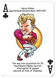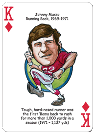 The Alabama Football Hero Deck playing cards for Alabama Crimson Tide fans feature fifty-two of the greatest players by position and era in Alabama Crimson Tide Football history. The face of each playing card is colorfully illustrated with a different hero ... this deck is sure to be a TOUCHDOWN with Crimson Tide fans of all ages!