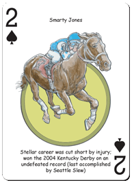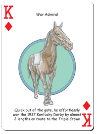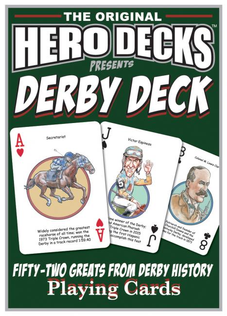 The Derby Hero Deck playing cards for Kentucky Derby fans feature fifty-two of the greatest personalities in Kentucky Derby history. The face of each playing card is colorfully illustrated with a different hero ... this deck makes a great gift for horse racing fans of all ages!