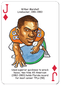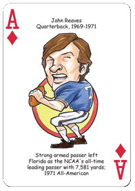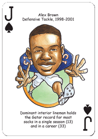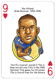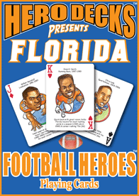 The Florida Football Hero Deck playing cards for Florida Gators fans feature fifty-two of the greatest players by position and era in Florida Gators football history. The face of each playing card is colorfully illustrated with a different hero ... this deck is sure to be a TOUCHDOWN with Gators fans of all ages!