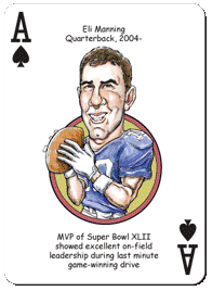 The New York NFC Football Hero Deck playing cards for New York Giants fans feature fifty-two of the greatest players by position and era in New York Giants football history. The face of each playing card is colorfully illustrated with a different hero ... this deck is sure to be a TOUCHDOWN with Giants fans of all ages!