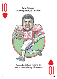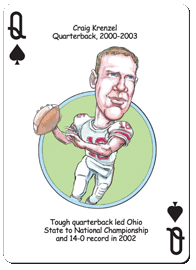 The Ohio State Football Hero Deck playing cards for OSU Buckeye Fans feature fifty-two of the greatest players by position and era in Ohio State Buckeyes Football history. The face of each playing card is colorfully illustrated with a different hero ... this deck is sure to be a TOUCHDOWN with Buckeyes fans of all ages!