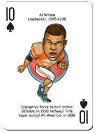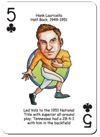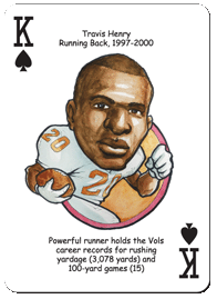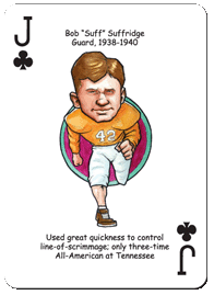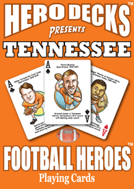 The Tennessee Football Hero Deck playing cards for Tennessee Volunteers fans feature fifty-two of the greatest players by position and era in Tennessee Volunteers Football history. The face of each playing card is colorfully illustrated with a different hero ... this deck is sure to be a TOUCHDOWN with Volunteers fans of all ages!